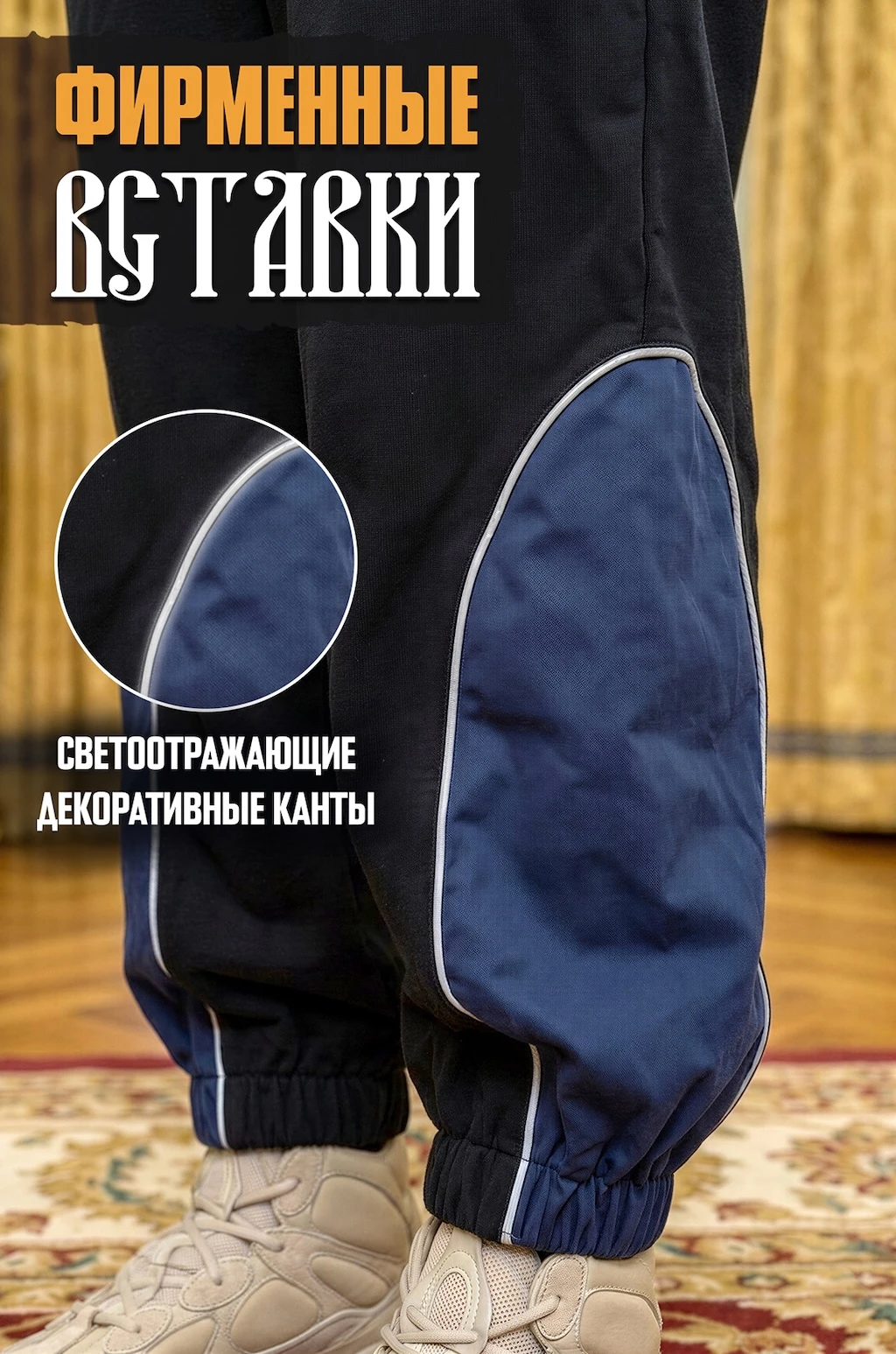 Материал — футер 2-х нитка, который отлично держит форму, приятен к телу и подходит как для повседневной носки, так и для активного образа жизни. Костюм выглядит структурно и уверенно, не теряя внешний вид со временем.