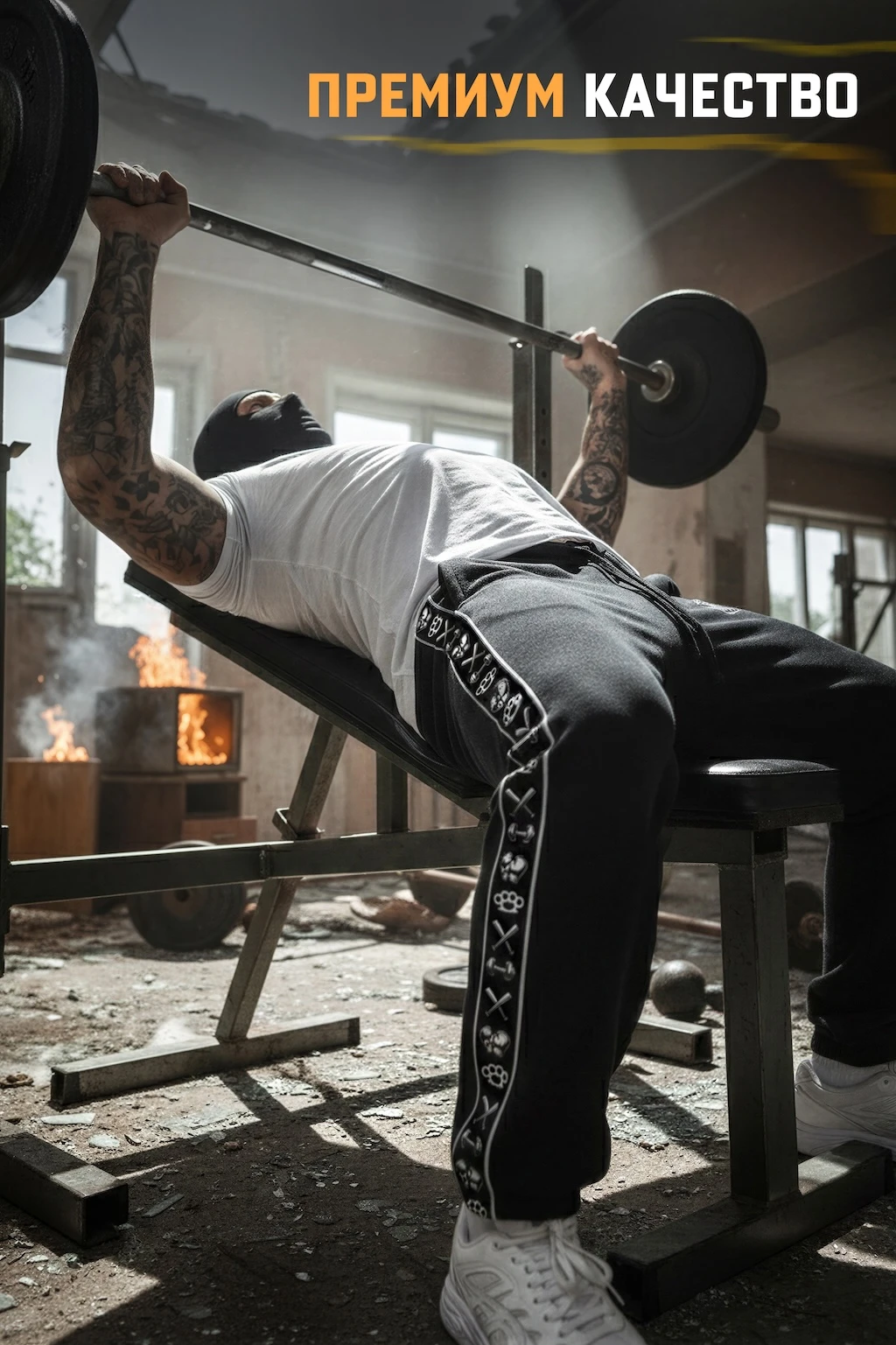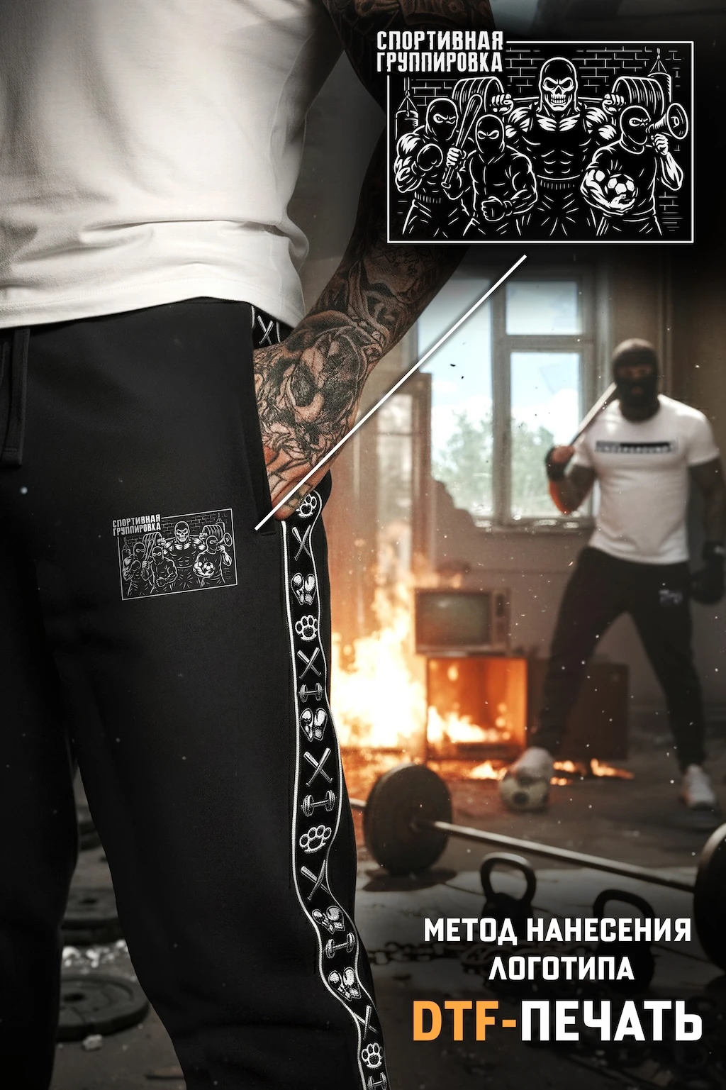 Свободная посадка обеспечивает комфорт и полную свободу движений, а качественная ткань держит форму даже при активной эксплуатации. Особый акцент — уникальные лампасы «СПОРТИВНАЯ ГРУППИРОВКА» с фирменной графикой. В каждом элементе читается дух спорта, улицы и сильного характера.